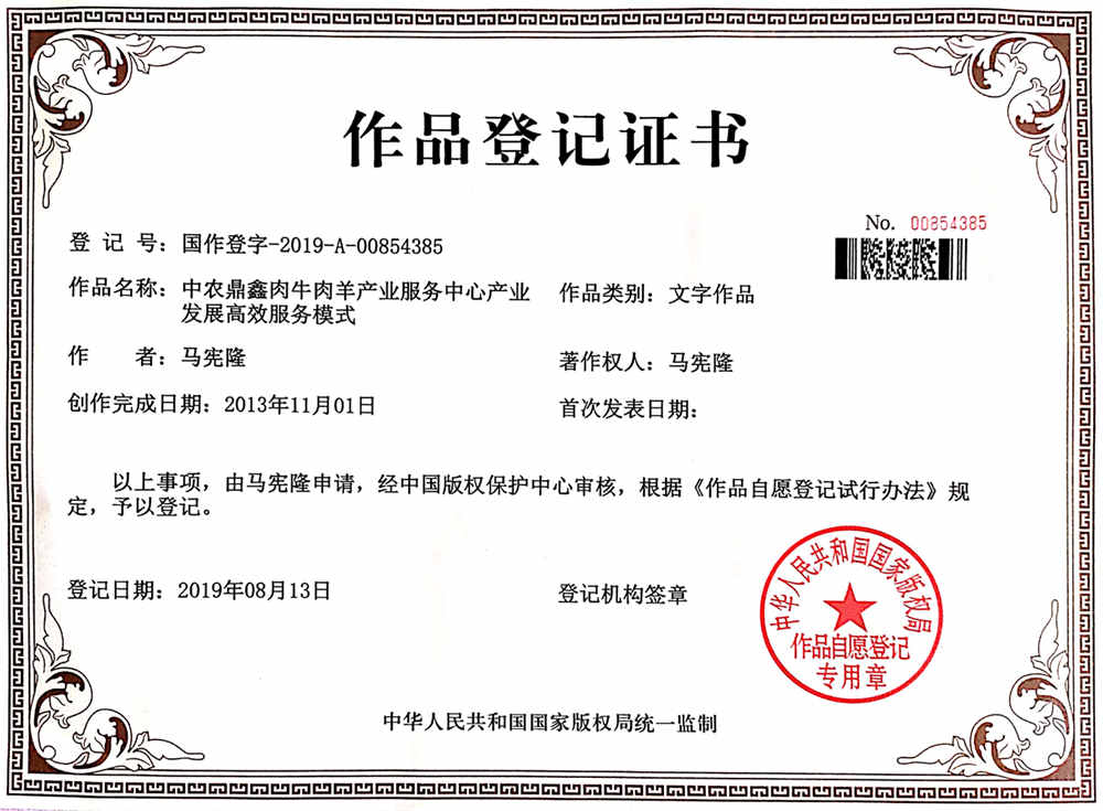母牛精準(zhǔn)模式版權(quán)登記證書